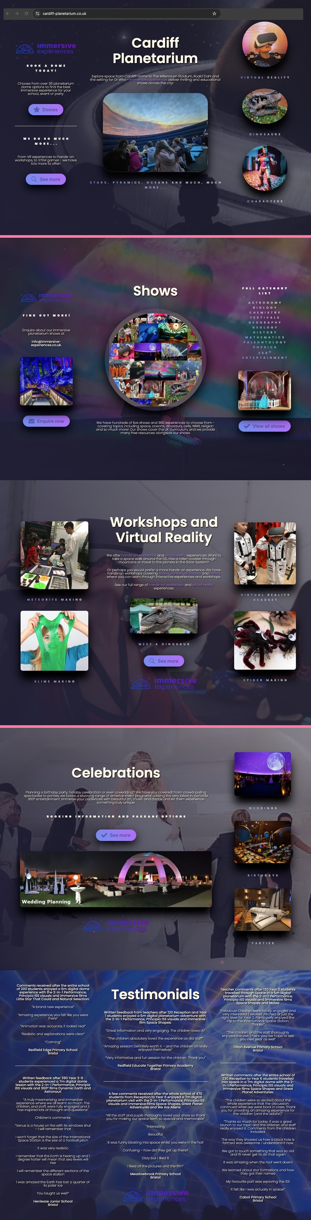 In August 2013 Mario Di Maggio was made redundant from Thinktank Planetarium (despite having made it the busiest planetarium in the UK and one of the best-known small planetariums in the world). Zee Dinally decided to leave and not contest the single remaining planetarium position. Zee obtained a job at Winchester Planetarium and asked Mario to oversee Immersive Theatres in his absence - which Mario did between August 2013 and July 2014. By then Immersive Theatres included a number of freelance presenters.