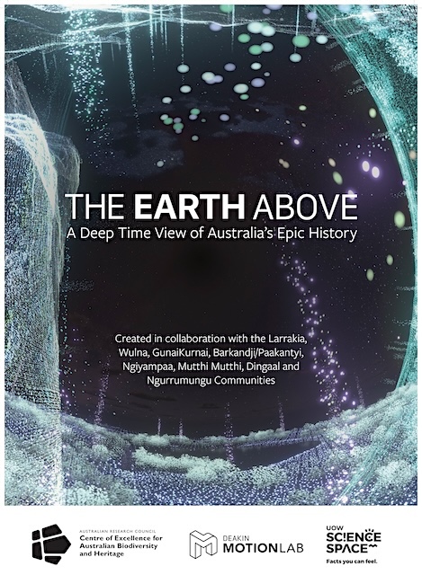 The Earth Above is a unique digital dome experience, exploring Australia's past 140,000 years, incorporating traditional and scientific knowledge to tell Australia’s epic story.
